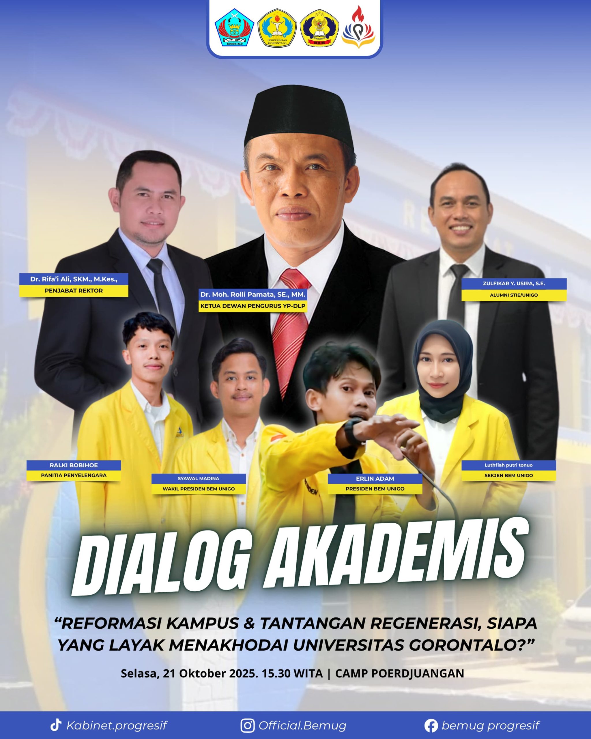 Gorontalo – Sebagai bentuk tanggung jawab moral dan intelektual mahasiswa terhadap arah perkembangan institusi pendidikan, Badan Eksekutif Mahasiswa (BEM) Universitas Gorontalo akan menggelar Dialog Akademis bertajuk “Reformasi Kampus dan Tantangan Regenerasi: Siapa yang Layak Menahkodai Universitas Gorontalo”, pada Selasa, 21 Oktober 2025, bertempat di Warkop Perjuangan Universitas Gorontalo.